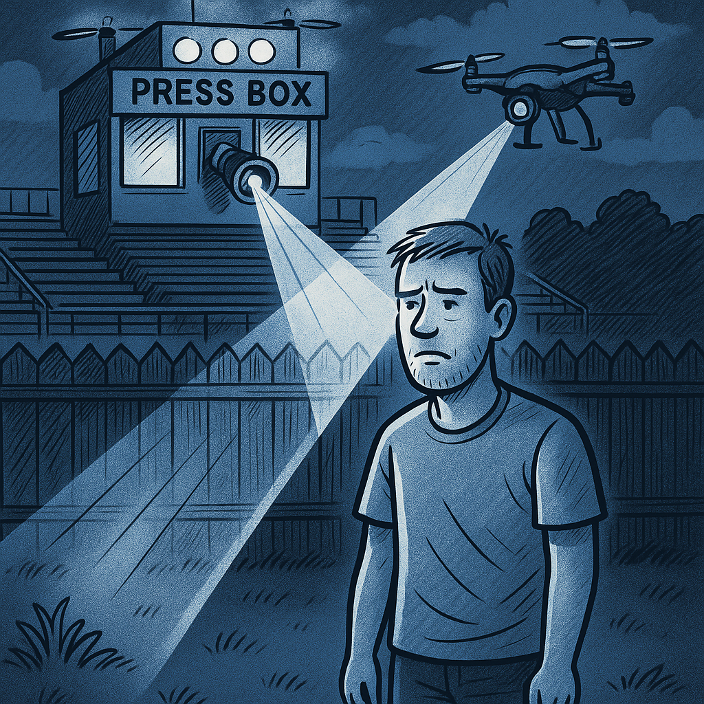 With your addition of the brand-new press box and camera perch at West Genesee High School, it appears that high-resolution cameras (and perhaps drones next) will have a perfect view directly into my backyard.