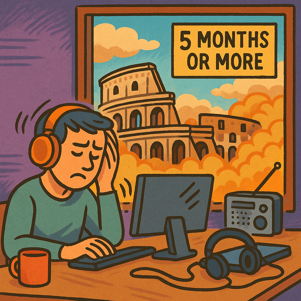 Then the desk starts vibrating. The floor starts shaking. It never ends.