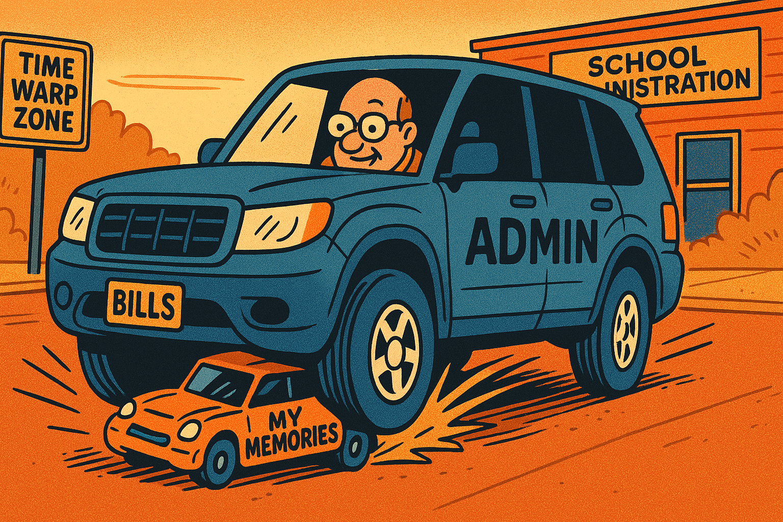 On that note I had a thought: I have a lot of memories at Stonehenge Elementary. During recess we’d sometimes play with toy cars in the parking lot by the administration building. What if—after all these years—that exact spot is where David C. Bills parks his car? Maybe it’s just coincidence. Or maybe it’s some strange “Cosmic Time-as-Space” connection and we were destined to cross paths like this.