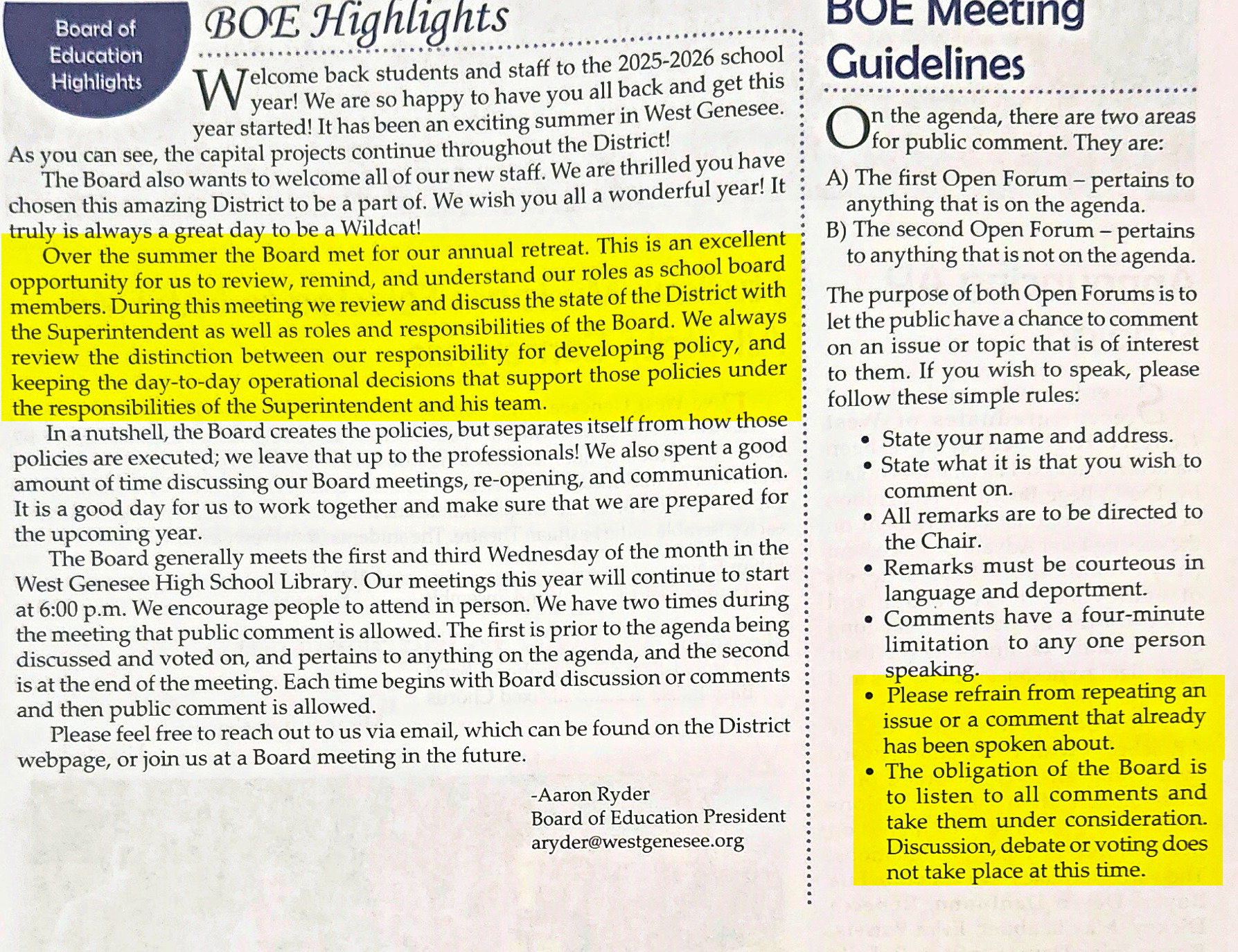 “The obligation of the Board is to listen to all comments and take them under consideration. Discussion, debate, or voting does not take place at this time.”